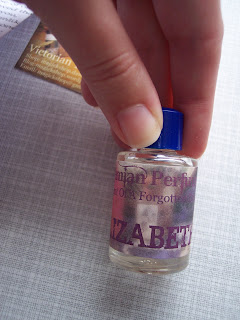 I really love aromatherapy so I asked Carolina from http://en.dawanda.com/shop/magickshop if she had a perfume from her shop's collection that could help to keep me calm on a recent flight abroad... she recommended 'Elizabeth', filled with a fresh soothing bloom fragrance. I couldn't help myself it sounded just the thing...
